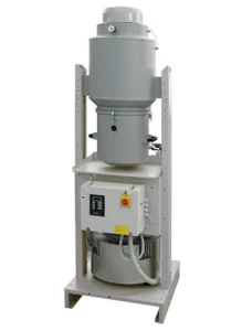 Podajnik jednofazowy VLM jest idealnym rozwiązaniem w przypadku podawania tworzywa na krótki dystans, w obrębie maszyny. Dmuchawa zamontowana jest bezpośrednio nad zbiornikiem na tworzywo. Podajniki wyposażone są w funkcję automatycznego przedmuchiwania filtra sprężonym powietrzem. Do każdego podajnika można podłączyć zawór, proporcjonalny dla podawania oryginału i przemiału. Wydajność wynosi do 600 kg / h, na odległość 30 m. Płyta mikroprocesora i klawiatura umożliwiają operatorowi łatwe programowanie i sterowanie maszyną